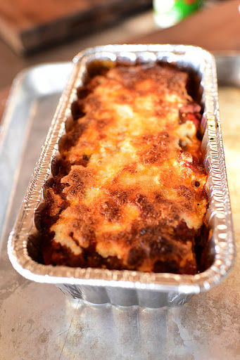 To assemble, spoon a little sauce into the bottom of a 9 x 13 inch pan OR smaller disposable foil loaf pans. Spread 2-3 tablespoons ricotta filling on each noodle, then roll them up. Lay them sideways in the pans (4 will fit in the loaf pans, or you can fill a 9 x 13 inch pan with the rollups.) Top with remaining sauce, plenty of grated mozzarella, and grated Parmesan.