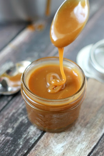 In a medium saucepan, melt the butter. Add brown sugar and heavy cream; whisk continuously over medium heat until sugar is dissolved.