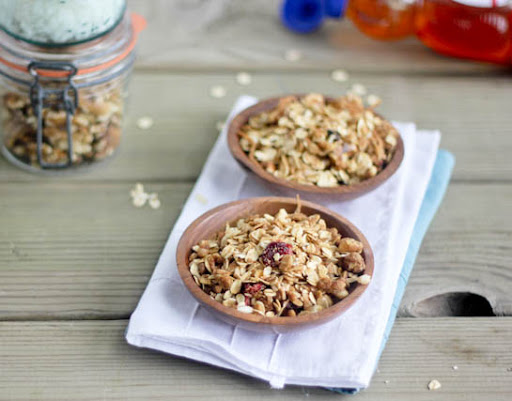 Combine 10 cups old-fashioned rolled oats, 1 1/2 Cups Sun Flower Seeds, 1 1/2 cups coarsely chopped walnuts, and 1/2 teaspoon coarse salt in a large bowl. Whisk together 3/4 cup plus 2 tablespoons each safflower oil and honey, and 2 teaspoons pure vanilla extract until well combined. Pour honey mixture over oat mixture, and mix well with a large wooden spoon until no clumps exist. Divide mixture between 2 rimmed baking sheets. bake 10 minutes, the turn granola. Continue to bake, checking and turning granola every 5 minutes, until golden brown, about 15 minutes more. Transfer granola to a large bowl and let cool. (If you leave it on the baking sheets, it will stick.) Granola can be stored in an airtight container. Makes 12 cups.