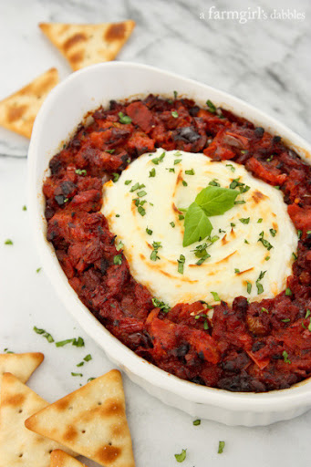 Remove from oven. Sprinkle with fresh basil and serve immediately with pita crackers or crostini.