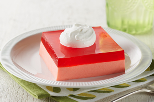 ADD 3/4 cup COOL WHIP to chilled thickened gelatin; whisk until well blended. Pour into 8-inch square dish. Refrigerate 15 min. or until gelatin mixture is set but not firm. Carefully pour reserved gelatin over creamy gelatin layer in dish.
