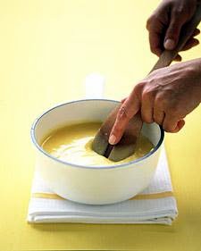 Place pan over medium heat. Cook, stirring constantly with a wooden spoon or heatproof flexible spatula, until lemon curd is thickened to the consistency of a loose pudding, 8 to 10 minutes.