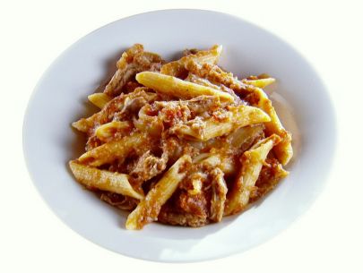 Bring a large pot of salted water to a boil and cook the penne for about 1 or 2 minutes less than the package directions. Drain and add the pasta to the sauce, tossing to coat. Finish cooking the pasta in the sauce, about 2 minutes, adding a ladle of pasta water as needed. Serve topped with the remaining grated Parmesan, or more as desired, and a drizzle of olive oil. Garnish with a few leaves of baby arugula, if using.