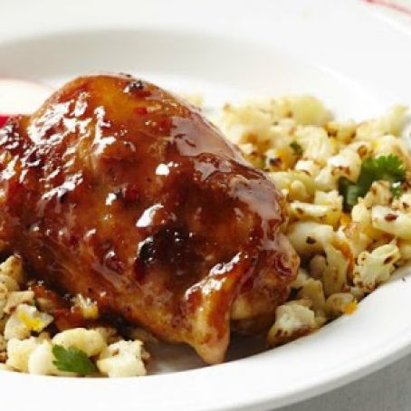 Asian Orange Chicken Thighs with Cauliflower Rice