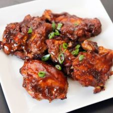 - 4 large bone-in chicken thighs (about 2 1/4 pounds total), skin removed