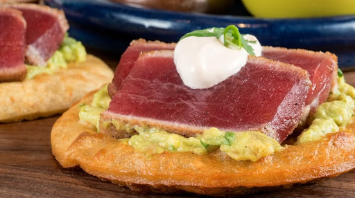 Ahi Tuna Tostadas with Avocado and Chipotle Crema