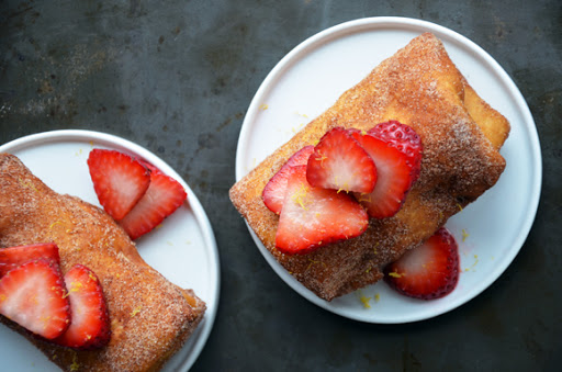 Remove all toothpicks from the chimichangas and transfer them to serving plates. Top each with a portion of the remaining 1 cup of sliced strawberries and serve immediately.