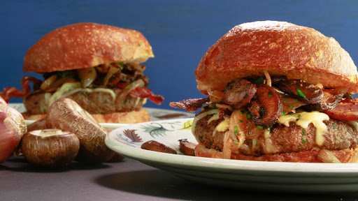 Top each with 2 slices of cheese. Tent the skillet with foil and cook until the cheese melts, about 2 minutes. Divide the patties among the bun bottoms. Top with the mushrooms, bacon and the bun tops.