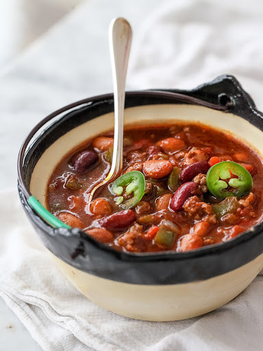 Add the beans, enchilada sauce and bottle of beer and season with kosher salt. Bring to a boil, then reduce to simmer cover with a lid and cook for 1 hour, stirring occasionally. Remove the cover, stir and cook for 1 more hour. Add ¼ to ½ cup water if the chili gets too thick, stir and simmer.