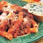 To make ahead and freeze: Prepare the ziti as directed above but do not bake. Cover the pans with foil and freeze. Bake the frozen ziti, uncovered, at 350 degrees F for 1 hour or until it's hot. Or, thaw the ziti in the refrigerator for 24 hours, then bake, uncovered, at 350 degrees F for 45 minutes or until it's hot. Serving Suggestion: Serve with zucchini cut into thinly sliced ribbons (use vegetable peeler) and sauteed in olive oil. Sprinkle with grated parmesan. For dessert serve lemon sorbet with a mint sprig.
