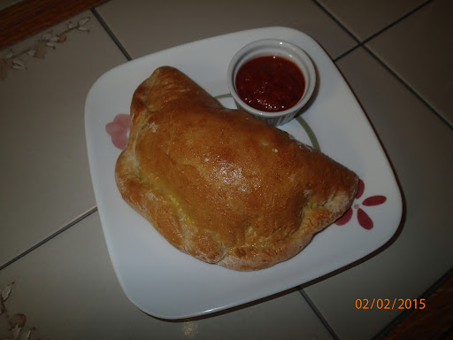 Mix filling ingredients together in a bowl. Preheat oven to 375. Separate dough into equal parts. I made three calzones. Roll out dough on floured surface into a circle. Fill each circle with filling and then fold over. Secure edges by pressing closed with a fork. Brush the top of each calzone with egg wash and put on a lightly greased cookie sheet. Bake for 30 minutes or until lightly browned. Serve hot Serve with Marinara sauce.