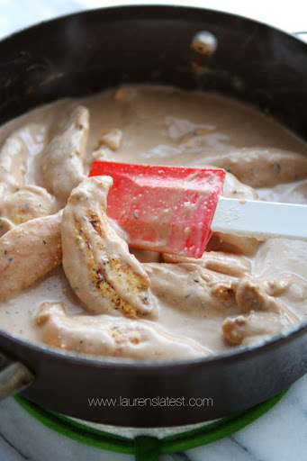 Lightly spray large, deep skillet with nonstick cooking spray and place over medium heat. Sprinkle chicken tenders on both sides with thyme, Mrs. Dash, salt and pepper. Place into hot skillet and brown each side. Chicken does not have to be fully cooked, but probably will be. Remove chicken from pan. Pour in alfredo sauce and balsamic vinegar. Stir to combine, then add in chicken. Coat chicken in sauce, cover pan and reduce to medium low heat until ready to eat.