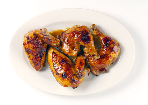 - 1 4-pound chicken, backbone removed, quartered, or 4 lb. breasts and whole legs
