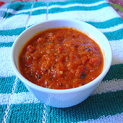This tasty & flavorful onion tomato chutney goes well with all snacks/breakfast items.