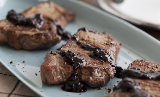 Remove cover. Using the back of a wooden spoon, mash blueberries against the side of the pan to release juices. Increase heat to medium and cook until sauce reaches your preferred thickness, 6 to 8 minutes. Strain if desired and serve with steak. Makes 1 1/2 cups sauce.