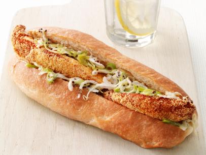 Toss the lettuce with the jalapeno dressing and season with salt, pepper and more pickling juice, if desired. Divide the fish and slaw among the rolls.