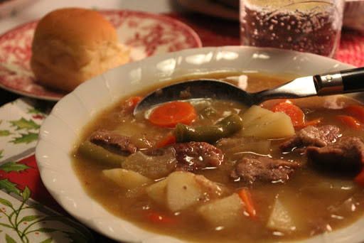 1/4 cup water and cornstarch until smooth. Mix with a little hot liquid and return mixture to pot. Stir and cook until bubbly.