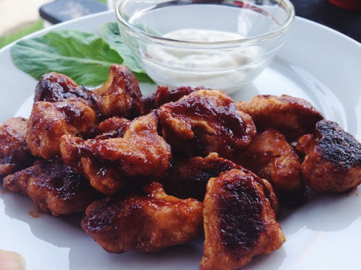 Remove cauliflower from oven and brush hot sauce over all the florets, until coated thoroughly.