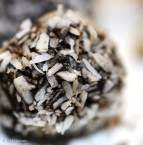 Mix wafer crumbs, melted margarine, 2 C sugar, OJ and nuts in bowl. Shape into balls. Combine soft margarine, remaining sugar and enough milk to moisten. Dip balls into mixture and roll in coconut. Store in airtight container.