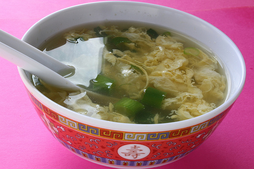 Step 2: Pour beaten egg in a thin stream into the broth (or drizzle with a fork). Stir with a fork until the egg forms shreds. Add green onions and serve.