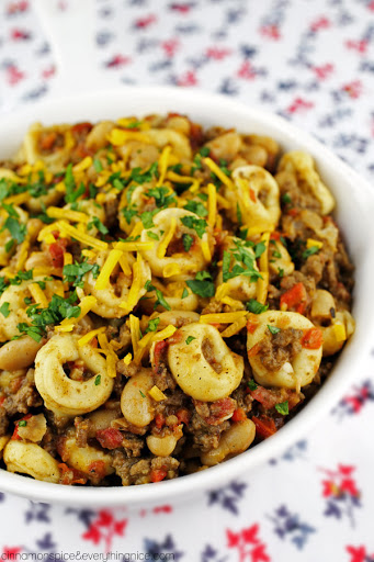 Serve with a sprinkle of cheddar, a dollop of sour cream and green onions.