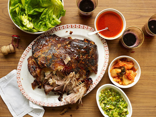 This is a recipe to win the dinner party sweepstakes, and at very low stakes: slow-roasted pork shoulder served with lettuce, rice and a raft of condiments. The chef David Chang serves the dish, known by its Korean name, bo ssam, at his Momofuku restaurant in the East Village and elsewhere. He shared the recipe with The Times in 2012. Mr. Chang is known as a kitchen innovator, but his bo ssam is a remarkably straightforward way to achieve high-level excellence with little more than ingredients and time. Simply cure the pork overnight beneath a shower of salt and some sugar, then roast it in a low oven until it collapses. Apply some brown sugar and a little more salt, then roast the skin a while longer until it takes on the quality of glistening bark. Meanwhile, make condiments – hot sauces and kimchi, rice, some oysters if you wish. Then tear meat off the bone and wrap it in lettuce, and keep at that until everything’s gone.
