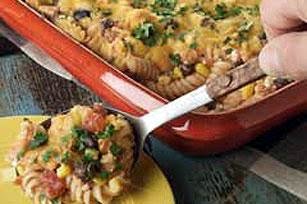 SPOON into 13x9-inch baking dish sprayed with cooking spray; top with remaining Cheddar.