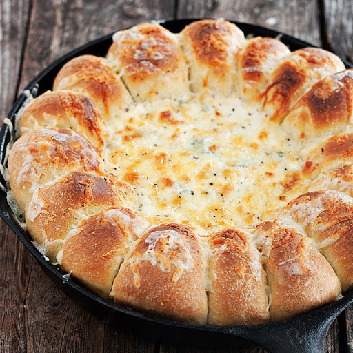 Raise oven rack to the top third and switch oven to broil. Sprinkle the rolls with additional mozzarella cheese and return skillet to oven under the broiler, until the cheese and dip is browned.