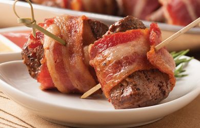 Thaw tenderloin steak tips and precooked bacon slices overnight in the refrigerator.