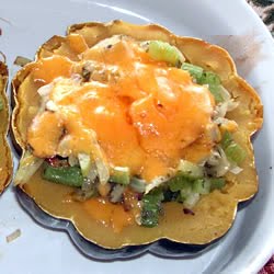 Place squash cut side down in a glass dish. Cook in microwave for 20 minutes on HIGH, until almost tender.