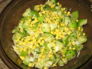 In a bowl, toss together tomatillos, onion, and cilantro.