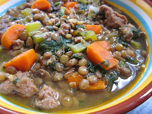A cold evening deserves a good, thick soup. Lentils are quick-cooking beans which do not need to be soaked before cooking.