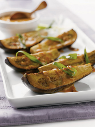 EGGPLANT-Roasted Baby Eggplant with Spicy Peanut Soy Dressing
