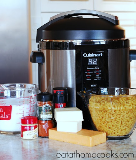 Stir macaroni, water, salt, mustard and cayenne pepper together in the pressure cooker.