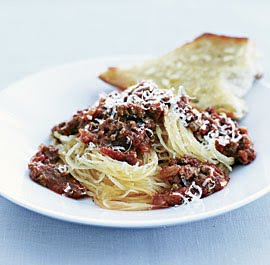 Beef Ragù Over Spaghetti Squash with Garlic Bread