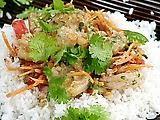 Serve over jasmine rice, garnished with cilantro sprigs.