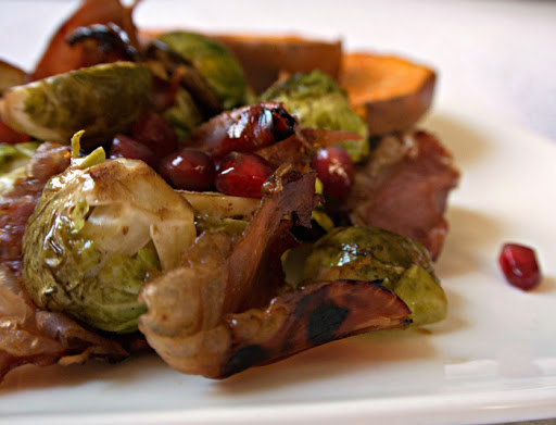 Balsamic-Roasted Brussels with Prosciutto and Pomegranate