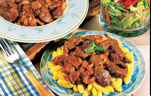 “Make dumplings with goulash. Mix 11/2 cups flour, 1/2 teaspoon baking powder, 3/4 teaspoon salt, 2 eggs and 1/2 cup milk. Drop bits of batter into boiling water. Cook until dumplings float.”