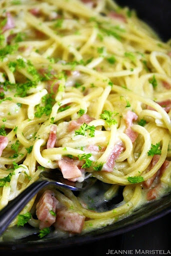 CARBONARA****Spaghetti with Ham and Alfredo Sauce - 12(4) Points 1 Picture