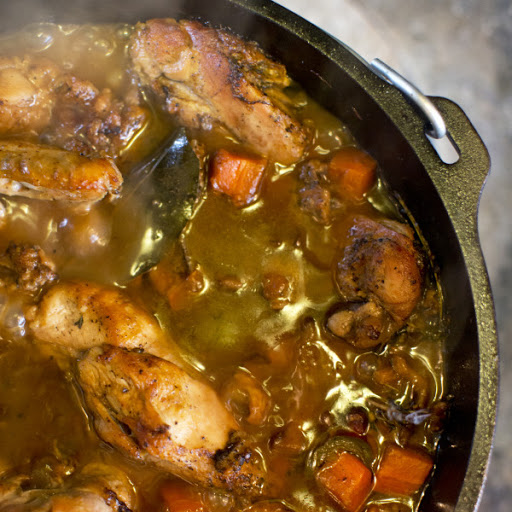 - 1 3-pound chicken or old rooster, cut into 8 pieces