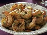 Quickly saute garlic and shallots in oil and butter for 1 minute, add shrimp and cook 3 minutes, tossing and turning frequently. Dump pink, firm, cooked shrimp from hot pan into hot seasoning blend and toss in seasoning mixture to coat shrimp evenly. Garnish with chopped chives. Serve warm or chilled.