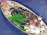 Place the fish on a cookie sheet, cover with the reserved fennel fronds, drizzle with olive oil and season with salt and pepper. Surround with the vegetable mixture and bake in the oven for 20 minutes. Serve on a large platter with extra-virgin olive oil and wedges of lemon.