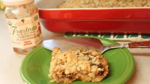 Take the remaining dough and crumble over the top of your strawberry spread.