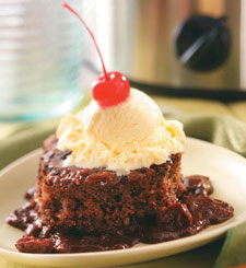 Cover and cook on high for 2 to 2-1/2 hours or until set. Turn off heat; let stand, covered, for 30 minutes. Serve warm with ice cream and maraschino cherries if desired. Yield: 8 servings.