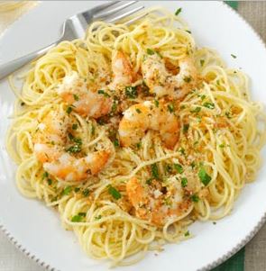 In a 10-in. ovenproof skillet, saute garlic in butter and oil until fragrant. Add the shrimp, lemon juice, pepper and oregano; cook and stir until shrimp turn pink. Sprinkle with cheese, bread crumbs and parsley.