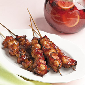 Breakfast Kebabs with Apple-Cinnamon Barbecue Sauce