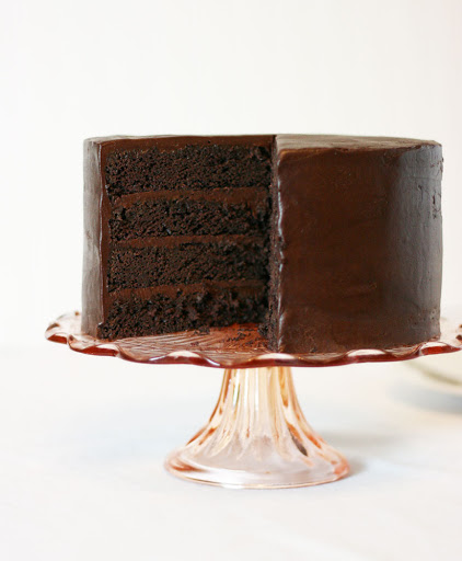 Pour into cake pans and bake for 55-60 minutes or until a cake tester just comes out clean. BANG THE PANS ON THE COUNTER AS SOON AS THEY COME OUT OF THE OVEN TO REMOVE EXCESS GASSES. Let cool in pans for 10 minutes and then turn out to a cooling rack to cool completely or wrap in plastic wrap until needed. Frost and fill with Sour Cream Chocolate Frosting or other icing and filling. Enjoy! *This makes 2 thick layers that can be torted but could also be baked in 3 8-inch pans.