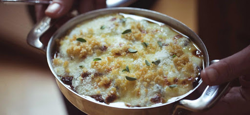 Repeat twice, creating 3 layers and ending with the last one-third of the Pecorino.