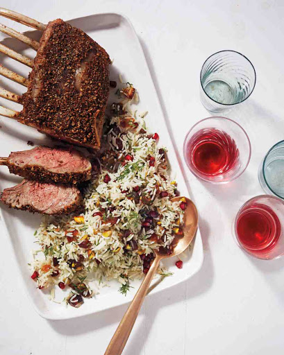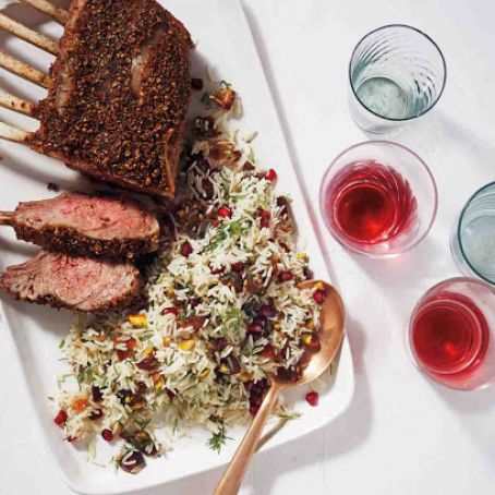 Pour off fat from pan; wipe clean. Pat seeds all over lamb. Return to pan. Roast in oven until a thermometer inserted in thickest part (avoiding bone) registers 130 degrees for medium-rare, 18 to 20 minutes. Transfer to a cutting board; let rest 10 minutes before slicing between bones into chops and serving with rice.