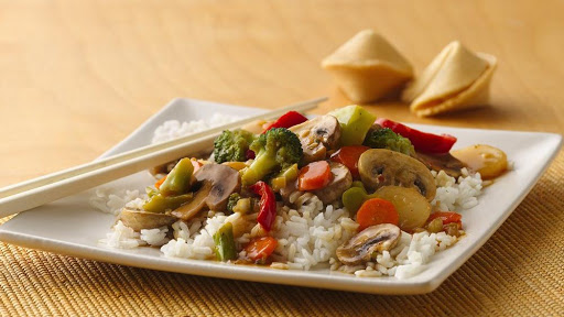 A colorful medley of quick and flavorful frozen vegetables brightens a basic meatless stir-fry served with instant rice.